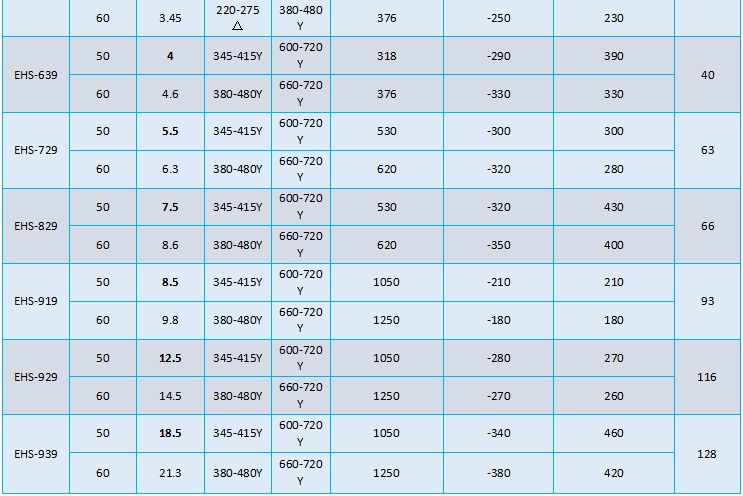 留意:以下参数值的频率(Hz)值为50/60,中国大陆当前频率一般而言为50hz